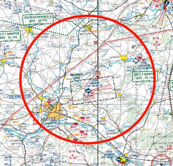 Zone dans laquelle le vol découverte est réalisable dans les 30 minutes (Aller/Retour).